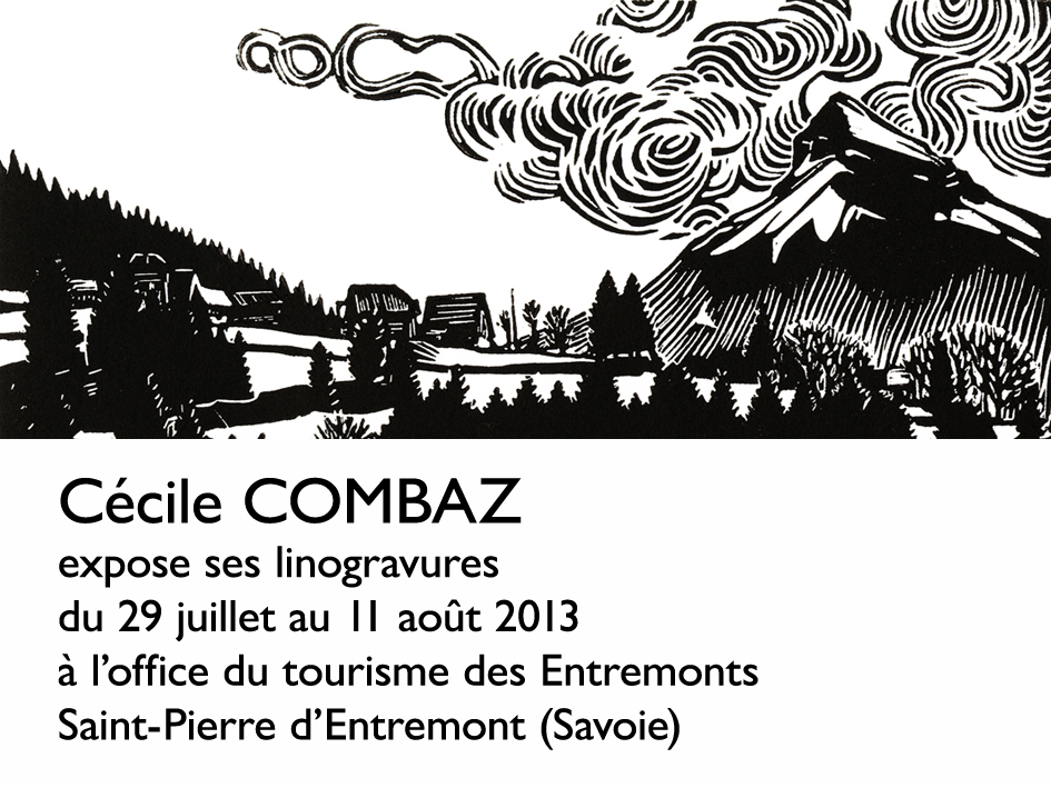 Exposition de linogravures de paysages de montagne (principalement de Chartreuse), à l'Office de tourisme des Entremonts, Saint Pierre d'Entremont (Savoie).