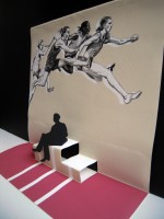 Notre projet exploite les plis et contre-plis d'une tapisserie, pour en faire des sièges. Deux propositions : le banc à l'orée du bois et le podium sportif.