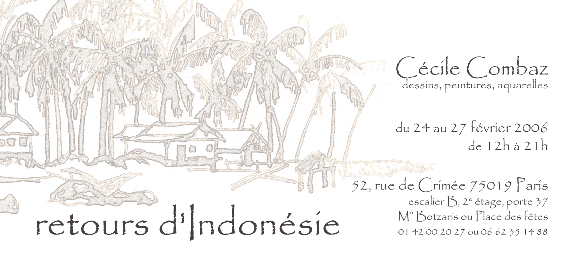 Dessins et aquarelles réalisés sur le vif en Indonésie, et peintures de volcans réalisées au retour, sont présentées à l'atelier.